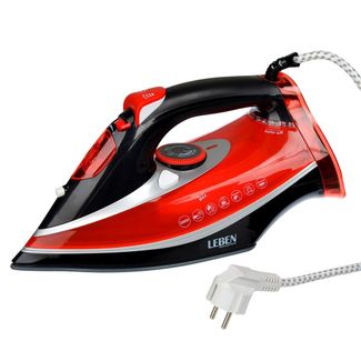 LEBEN Утюг с отпаривателем 3000 Вт, подошва - керамическое покрытие черный, красный