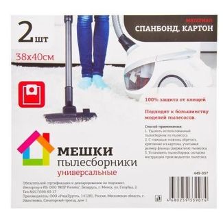 - Мешки пылесборники 2 шт, спанбонд, картон, 38х40см 38х40 см по выгодной цене 61 р. руб.;