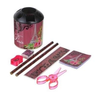 Закажите Миракл Пэрис Набор канцелярский в стакане, 8 пр:линейка,2 карандаша,точилка,ластик,ножницы,блокнот у компании Интернет-Запчасти в России на портале Alloy:
