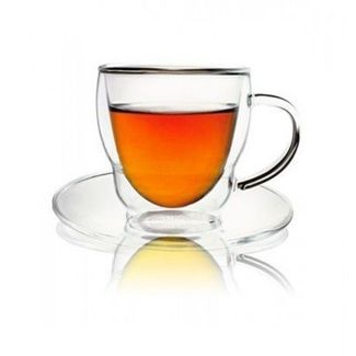 Стильный набор из двух чашек с блюдцами. Чашки изготовлены из двойного термостекла. Благодаря современным технологиям внешнее стекло остается холодным Характеристики: