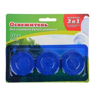 - Освежитель таблетка для сливного бачка унитаза Лес 32гр. 3шт, (ПАВ), блистер по выгодной цене 148 р. руб.;