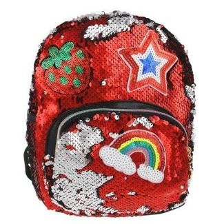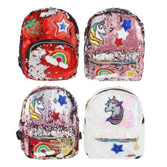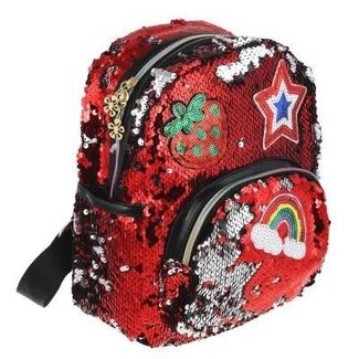 Рюкзак мини, 28x23x10см,ПЭ,1 отд,3 карм,2-сторонние пайетки декор со стразами,радуж.молнии,4 дизайна 4 дизайна