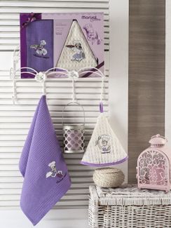 Закажите Салфетки METEOR вафельные с вышивкой в коробке (50х50)(50х70) 2 шт. MARISOL ASCI у компании Meleğim-текстиль в России на портале Alloy: