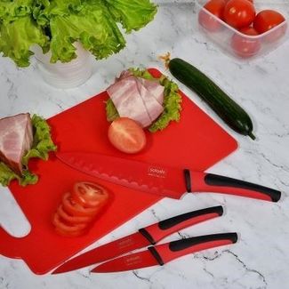 - SATOSHI Набор ножей кухонных 4пр, c разделочной доской пластик по выгодной цене 1 384 р. руб.;