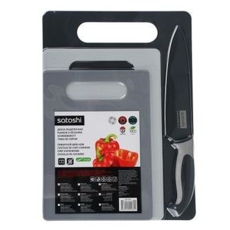 - SATOSHI Набор разделочных досок с ножом, 4 предмета по выгодной цене 966 р. руб.;