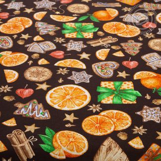 - Скатерть из рогожки "Цитрус коричневый" 150х220 см 100% хлопок по выгодной цене 825 р. руб.;