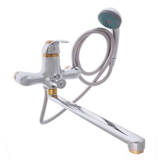 Смеситель для ванны (567-023) оснащен длинным изливом и комплектом для душа, обеспечивающим комфортные водные процедуры. Изделие из цинкового сплава, покрытое хромом, можно купить, добавив его в корзину. Материал отличается устойчивостью к коррозии, окислению и известняковой накипи. Керамический картридж обеспечивает бесперебойную и длительную работу сантехники. None Возможен самовывоз. Есть доставка.