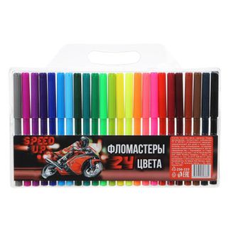 - Спидап Фломастеры, 24 цвета, с цветным вентилируемым колпачком, в ПВХ пенале с подвесом 24 цвета по выгодной цене 161 р. руб.;