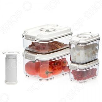 Главная причина порчи продуктов это бактерии. С давних времен люди для сохранения продуктов питания использовали термическую обработку, но как известно бактерии погибают не только под воздействием высоких температур, но и при отсутствии воздуха. Набор вакуумных контейнеров для продуктов STATUS VAC-REC-Smaller состоит из четырех вместительных контейнеров, позволяющих увеличить срок годности продуктов в холодильнике. Создание вакуума внутри контейнеров позволяет сохранить аромат, цвет и питательные вещества продуктов, приостановить их окисление, а также сдержать развитие гнилостных бактерий. Особенности и преимущества контейнеров Изготовлены из пищевого прочного и безопасного для здоровья тритана. Материал не содержит бисфенол А BPA-Free . Изделия обладают высокой надежностью и долговечностью. Подходят для хранения различных продуктов в холодильнике или морозильной камере до -21 С . Допускается разогрев блюд в микроволновой печи без крышки . На крышках контейнеров предусмотрены специальные клапаны для откачки воздуха с помощью насоса. Также на крышках контейнеров имеются механические календари, предназначенные для контроля свежести. Контейнеры удобны в использовании, легко чистятся и моются. Можно мыть в посудомоечной машине. В комплекте предусмотрен ручной насос. Увеличивает сроки хранения в холодильнике при температуре от 3 С до 5 С: для мяса с 3 до 10 дней; для сыра с 12 до 25 дней; для овощей с 4 до 8 дней; для хлеба с 2 до 10 дней; для кондитерских изделий с 4 до 10 дней. None Возможен самовывоз. Есть доставка.