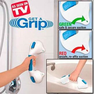 Крепится к любой ровной поверхности, нажатием всего одной кнопки. Подходит для ванной, туалетной комнаты, коридора, двери. Могут использоваться инвалидами, пожилыми людьми или людьми с ослабленной мышечной системой. Поручень используется в качестве перил, причем его не надо прибивать к стенке. Он изготовлен из прочного пластика и крепится к плитке, стеклоткани, фарфору. Многофункциональный вакуумный поручень имеет специальный цветовой индикатор, который показывает, правильно ли его прикрепили. Максимальная нагрузка на кронштейны составляет восемьдесят килограммов. Поручни служат опорой при входе или выходе из ванны и других обычных движениях и прекрасно помогают людям с ослабленными мышцами.Преимущества ручки Get a Grip (Гэт э Грип):Не нужно прибивать к стене. Такие поручни можно использовать как перила.Изготовлена из особо прочного пластикаДанные кронштейны предназначены для крепления к гладкой, не пористой поверхности, такой как плитка, стекло, фарфор или стеклотканьСнабжены цветовым индикатором, показывающим, правильно ли вы его установили.Правила эксплуатации:Кронштейны не рассчитаны на удержание общей массы тела человека. Максимальная нагрузка – 80 кгКронштейны сконструированы и предназначены для поддержания опоры при совершении обычных движений, например, при входе или выходе из ванныВсегда проверяйте надежность присоединения кронштейна к стене перед каждым его использованиемНе присоединяйте кронштейн к движущимся поверхностямНе использовать на деревянных, окрашенных поверхностях и стенах, оклеенных обоями.Характеристики: Максимальная временная нагрузка: В направлении вертикально вверх - 60 кг (с горизонтальной поверхности)В направлении вниз – 29 кг (при установке на вертикальной поверхности)Производитель: КитайЦвет: белый с серымМатериал: пластик. satom Страна производства: Китай Возможен самовывоз. Есть доставка.