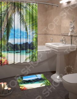 Создание уюта в доме всегда было основной задачей каждого. Все должно быть идеально подобрано по цвету и интерьеру и тут важна каждая деталь. Не стала исключением и ванная комната. Набор для ванной комнаты: шторка и коврик ТамиТекс Сейшелы это набор аксессуаров, в который входит шторка для зонирования места приема ванной или душа, а также коврик. Они станут важным и необходимым дополнением каждой ванной комнаты. Изделия выполнены в одинаковом стиле и помогут создать комфортные условия при приеме душа и уют, украсив любой интерьер. Основное предназначение набора защита стен и пола от брызг и капель воды. Приступаем к водным процедурам Штора не только создаст уют, но и предотвратит намокание пола вокруг ванной, задерживая капли. А значит и риск появления плесени и грибков сводится к минимуму. Изделие закрепляется на карнизе при помощи люверсов. Синтетическая ткань с плотным плетением рогожка. Материал прочен и надежен, отлично подходит для помещений с повышенной влажностью. Легко очищается от водных и мыльных разводов, не впитывает влагу. Размер полотна 148х180 см. Шторка хорошо сохраняет форму и плотно примыкает к ванной. Красочный дизайн такой аксессуар поможет создать в ванной особую атмосферу, чтобы вы смогли как следует расслабиться после рабочего дня или взбодриться под утренним душем. Уют, комфорт и безопасность Коврик станет полезным дополнением для ванной комнаты. Такой текстиль успешно выполняет множество полезных функций: обеспечивает безопасное пребывание в ванной комнате после купания пол становится влажным, а риск поскользнуться увеличивается; облегчает уборку влага впитывается в ткань ковра, а мокрых следов на кафеле не остается; не дает коже соприкасаться с холодным полом это не только неприятно, но и небезопасно для здоровья; вместе со шторкой формирует уникальный гармоничный стиль ванной, наполняет интерьер уютом и добавляет ярких красок. Коврик изготовлен из 3-слойной ткани блэкаут. Материал на основе сатинового плетения обладает прочным