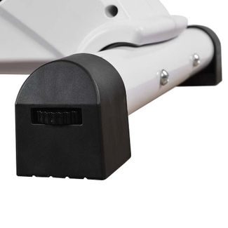 К числу дополнительных опций эллипсоида относятся транспортировочные ролики, компенсаторы неровностей пола. Таким образом, перемещать тренажер из одного места в другое не составит труда, а компенсаторы позволят отрегулировать положение стабилизаторов на любой поверхности.
