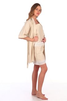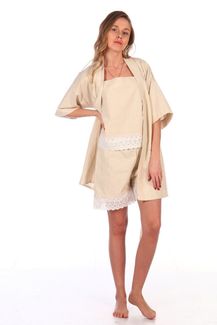 Закажите Комплект льняной женский домашний - Александра топ+халат+шорты | экрю у компании GIPER-TEX в Россиина портале Alloy: