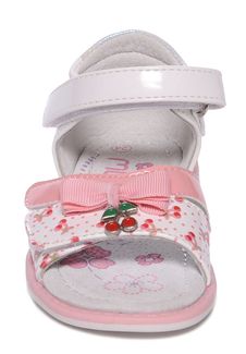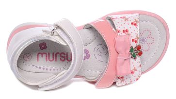 Босоножки Mursu бело-розовые - нарядная модель, изготовленная из лакированной кожи и декорированная украшением-вишенками и небольшим бантом. Внутренняя отделка выполнена из натуральной кожи. Липучки в передней части позволяют регулировать обувь по полноте. Фиксируются с помощью застежки-велкро. Минимальная сумма заказа 1500 руб. Возможен самовывоз. Есть доставка.