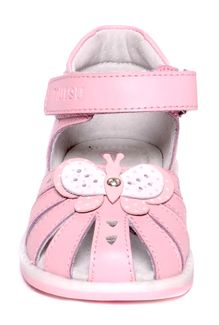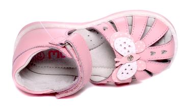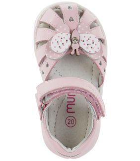 Босоножки Mursu нежно-розовые изготовлены из натуральной кожи. Модель имеет высокий задник с мягкой манжетой, предотвращающей натирание, и широкий ремешок на липучке, надежно фиксирующий ножку. Босоножки декорированы аппликацией в виде бабочки и стразом. Минимальная сумма заказа 1500 руб. Возможен самовывоз. Есть доставка.