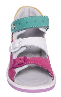 Сандалии Парижская коммуна by Elegami фуксия/белый р. 20-25 порадуют вас не только высоким качеством изготовления, но и яркой расцветкой и оригинальным дизайном. Модель полностью выполнена из натуральной кожи. Сандалии застегиваются на широкую удобную липучку. Декорированы цветными вставками и металлическими заклепками. Наличные, Visa/MasterCard, Яндекс.Деньги, WebMoney Возможен самовывоз. Есть доставка.
