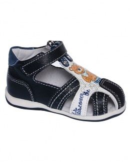 Сандалии Парижская коммуна by Elegami Медвежонок 20-26 р-ры темно-синие с белым - кожаные легкие туфельки на каждый день. Гибкая литая подошва из термоэластопласта обладает отличным сцеплением с поверхностью. Благодаря застежке-липучке модель подходит на любой подъем. Высокая пятка надежно фиксирует стопу. Возраст ребенка: 1-3 года. Наличные, Visa/MasterCard, Яндекс.Деньги, WebMoney Возможен самовывоз. Есть доставка.