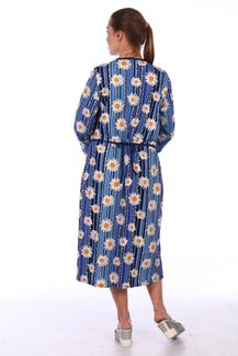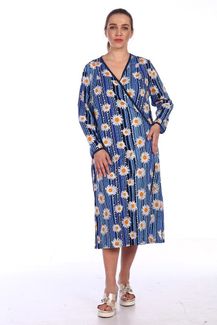 Платье-халат с запахом в цветочный принт - Ромашки Fantasy | синее