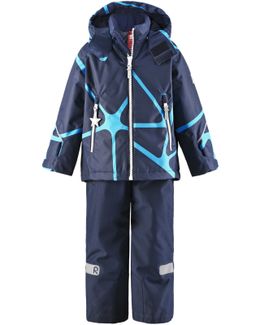 Комплект зимний для мальчика Reima Kiddo Kide navy - мембранная двойка, включающая брюки и куртку. Куртка с усиленными вставками на рукавах и спинке. Снабжена отстегивающимся капюшоном, застежкой-молнией, двумя карманами на молнии, регулируемым по ширине подолом и манжетами с застежкой Velcro. Брюки с регулируемыми съемными подтяжками, широким поясом с эластичными вставками, застежкой-молнией, боковым карманом, регулируемыми при помощи застежки Velcro штанинами и внутренними манжетами с регулирующей кнопочной застежкой. Внешний материал устойчив к загрязнениям и осадкам. Для детей от 2 лет. Наличные, Visa/MasterCard, Яндекс.Деньги, WebMoney Возможен самовывоз. Есть доставка.