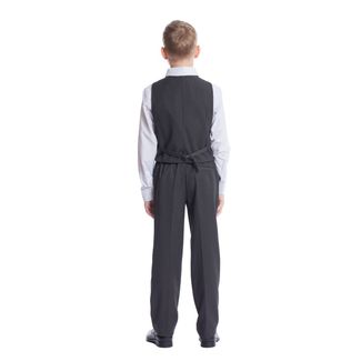 Классический комплект из жилета и строгих брюк для мальчика. Жилет выполнен на подкладке, украшен двумя декоративными кармашками и застегивается на три пуговицы. Брюки имеют классический крой, застегиваются на молнию и пуговицу, имеют два кармана спереди. Такой стильный костюм создаст отличный ансамбль с любой рубашкой или водолазкой. Наличные, Visa/MasterCard, Яндекс.Деньги, WebMoney Возможен самовывоз. Есть доставка.