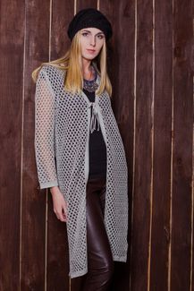 Стильный кардиган сетчатый изо льна - Сати | св-серый