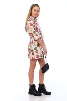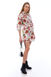 Стильный льняной блейзер с цветочным притом - Берзэ | серо-красный