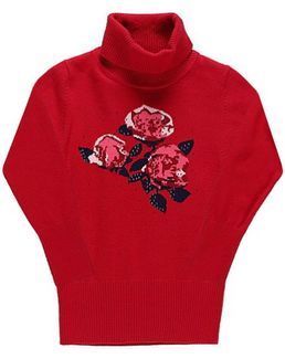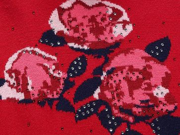 Свитер для девочки Sweet Berry Teddy Bear Цветы красный - уютная трикотажная модель с высоким воротником. Декорирована рисунком, выполненным в технике интарсия. Для детей от 3 до 8 лет. Наличные, Visa/MasterCard, Яндекс.Деньги, WebMoney Возможен самовывоз. Есть доставка.