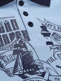 Поло Sweet Berry Корабль изготовлено из натурального хлопка и декорировано морским принтом спереди. Манжеты и воротничок выполнены из контрастной ткани. Застёжка на три пуговицы. Минимальная сумма заказа 1500 руб. Возможен самовывоз. Есть доставка.