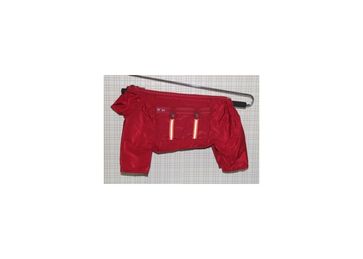 Комбинезон-переноска из плащёво-курточной водо- и ветроотталкивающей ткани на фланелевой (байковой) подкладке. Снабжён ручками из швейной стропы, которые легко «спрятать» в боковые кармашки по обе стороны туловища собаки. Предназначен для прогулок в прохладную дождливую погоду. Производится только для декоративных собачек. None