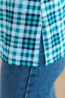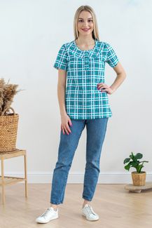 Туника женская в клеточку - Дакота | бирюза-ментол | + size