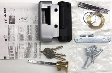 Накладной электромеханический замок CISA 11.630.60.3 с автоматически блокирующейся защелкой, предназначен для правых дверей наружного открывания. Внешний цилиндр накладной, допускается установка на двери различной толщины, упрощая установку замка на деревянные двери.
