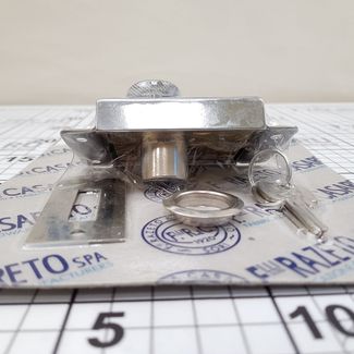 Хромированная латунь, накладной на внутреннюю поверхность. Два ключа, размеры замка 98 x 58 мм, высота цилиндра 20 мм. Требуется предоплата 100% Страна производства: Италия Возможен самовывоз. Есть доставка. Доставка: 350.0RUB