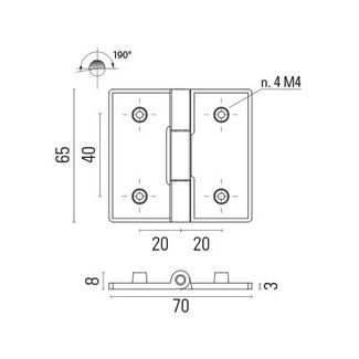 Foresti & Suardi Петля-бабочка из хромированной латуни Foresti & Suardi 207A.C 70 x 65 мм ось снизу