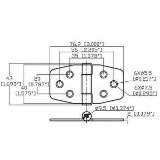 Marine Town Петля фрикционная из нержавеющей стали Marine Town 0319223 76,2 x 40 мм верхний палец
