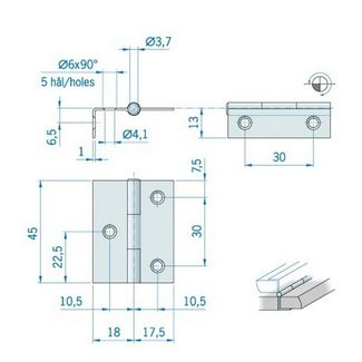 Roca Петля для люков из кислотоупорной нержавеющей стали Roca 441143 45 x 35 мм с одной угловой картой