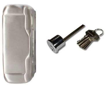 Планка цилиндрового механизма вставляется в горизонтальную прорезь в корпусе замка шириной 30 мм, что обеспечивает возможность некоторой свободы в выборе расстояния от торца двери (калитки) до оси цилиндра.