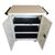 внутри корпуса располагаются четыре полки с пластиковыми ложементами для размещения планшетов (с ячейкой 25 мм); внутреннее отделение корпуса закрывается двумя дверьми с ригельным замком; две средние и верхняя полки могут регулироваться по высоте, в зависимости от размера планшета; в верхней части всех полок закреплена специальная гребенка для укладки и фиксации проводов зарядных устройств к каждому планшету; для минимизации времени зарядки всех планшетов розетки разделены на три группы, с левой стороны первая, вторая и третья группы, аналогично с правой стороны; корпус устанавливается на четыре колеса. Два колеса поворотные, два поворотные, оснащенные стопором; на обеих боковых сторонах корпуса устанавливаются ручки, для передвижения изделия; верх корпуса тележки для планшетов закрывается столешницей из ламинированного МДФ; в задней части корпуса расположен технический отсек для зарядных устройств; внутри отсека, с левой и правой сторон располагаются розетки для подключения зарядных устройств планшетов (в случае комплектации планшетов зарядными устройствами, подключаемыми непосредственно в розетку), и полки для размещения блоков зарядных устройств (в случае комплектации планшетов блоками зарядных устройств); в левой части также расположен контроллер управления режимами зарядки, клавиши, световые индикаторы режимов зарядки и сетевой шнур для подключения к электросети; технический отсек закрывается съемной дверью с двумя замками.
