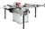 Станок имеет отверстие для пилы и линейку параллельных резов — вдоль нее перемещается деталь при обработке. None