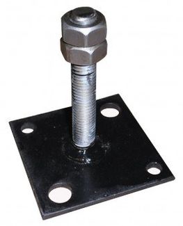Опора представляет собой прямоугольную площадку (80*80 мм) с двумя отверстиями под анкерные болты (12 мм) и приваренную на нее с резьбовую шпильку с двумя накрученными гайками М14.