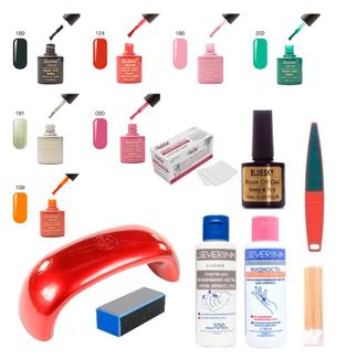 Минимальный набор для шеллака с лампой подойдет тем, кто хочет в домашних условиях научиться создавать шедевры на своих ногтях! Комплект включает базовые составы и принадлежности: лампу для сушки ногтевых покрытий, основу, топ, 7 цветных гель-лаков, жидкости для снятия шеллака и удаления липкого слоя, а также самые необходимые инструменты. Набор включает в себя: