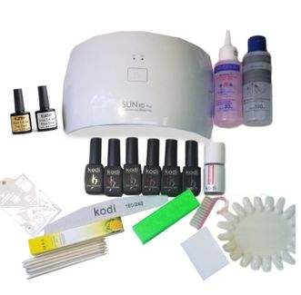 Вы готовы сделать свои первые шаги в маникюрном деле? Мы специально для вас разработали стартовый набор, в котором уже есть все необходимое для покрытия шеллаком в домашних условиях. Набор для шеллака популярный набор для новичков в маникюрном деле. Набор уже укомплектован всем самым необходимым: лампа для сушки гель-лака, базовое и верхнее (топ) покрытия, 6 цветных гель-лаков (цвета по умолчанию), Ultrabond Kodi, стразы для дизайна, жидкость для обезжиривания ногтей, жидкость для снятия шеллака, маникюрная пилка и шлифовочный бафик, апельсиновые палочки, масло для кутикулы, маникюрная щеточка, палитра. Профессиональный маникюр с гель-лаком KODI! В основе стартового набора для шеллака комплект для нанесения гель-лаков торговой марки Kodi, являющейся очень популярной во всём мире. В наборе Вы найдете базовое и верхнее (топ) покрытия, а также 6 цветных гель-лаков. По умолчанию в набор входят самые популярные оттенки гель-лака. Ультрафиолетовая лампа для шеллака мощностью 36 Ватт В набор входит профессиональная ультрафиолетовая лампа класса "А" мощностью 36 Ватт используется для полимеризации искусственных покрытий. Идеальна для домашнего и профессионального использования. Имеет стильный дизайн и компактные размеры. Прибор оснащен 18-ю светодиодными лампочками. Лампа с таймером на 30, 60 секунд + бесконечность. В лампах SUN, применена технология двойного источника света, которая охватывает более широкий спектр ультрафиолетового диапазона: 365-405 nm, что обеспечивает идеальную сушку гель-лаков и обычных УФ-гелей и поэтому подходит для сушки любых гелей-лаков и твердых гелей, акриловых покрытий, а также для сложного наращивания, например аквариумного дизайна. КОМПЛЕКТАЦИЯ НАБОРА: