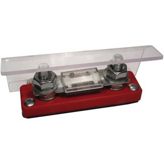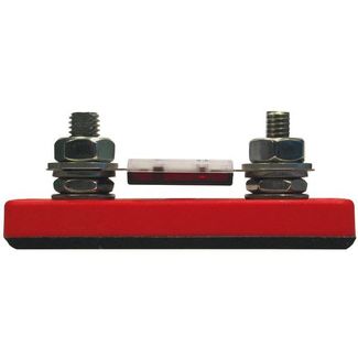 Компактный держатель для предохранителей на большие токи от 35 до 750 А. Резьба M10, расстояние между винтами 120 мм. Размеры основания 105 x 30 мм, высота 42 мм. Сами предохранители заказываются отдельно.