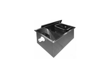 Жироуловитель служит для улавливания и удаления неэмульгированных жиров и масел из сточных вод. Жироуловитель используется как первоначальная очистная единица в самостоятельной изолированной канализационной системе и предотвращает засорение общих систем канализации. Корпус жироуловителя представляет собой сварную герметичную емкость с перегородками. Все детали изготовлены из нержавеющей стали, что обеспечивает надежную антикоррозионную защиту. Перфорированный лоток для сбора крупных частиц съемный. Для обслуживания жироуловитель оборудован съемной крышкой, конструкция которой препятствует проникновению запахов наружу. Объем 54 литра.