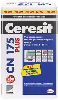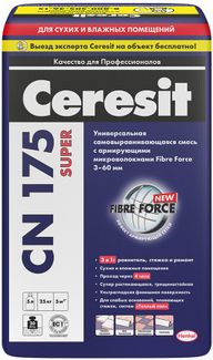 - ЦЕРЕЗИТ CN-175 Супер самовыравнивающаяся стяжка пола (25кг) CERESIT CN175 Super универсальная самовыравнивающаяся смесь для пола (25кг) по выгодной цене 512 р. руб.;