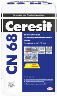 - ЦЕРЕЗИТ CN-68 финишный самовыравнивающий пол (25кг) CERESIT CN68 тонкослойная самовыравнивающаяся смесь (25кг) по выгодной цене 608 р. руб.;