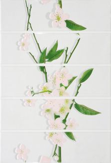 Керамическая плитка Уралкерамика Мидори 7МИ005 на белом розовый декор 24,9х36,4