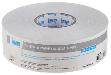 - КНАУФ Курт лента бумажная армирующая для швов ГКЛ 52мм (75м) KNAUF Kurt лента бумажная с армирующими волокнами для швов гипсокартона 52мм (75м) по выгодной цене 899 р. руб.;