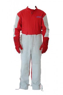 Лицевая часть костюма (рукава и брюки) имеют дополнительную защиту из кожаных элементов, т.к. подвергаются повышенному износу. Спина комбинезона выполнена из более легкой хлопковой ткани, поэтому воздух может свободно циркулировать внутри.