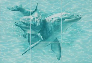 Керамическая плитка Уралкерамика Лагуна 76Д (из 9 плиток) Дельфины панно 74,7х109,2