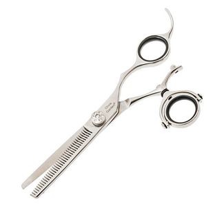 великолепная эргономика, снижающая нагрузку на руку (offset); заточка режущей кромки полу–convex; ножницы отличает высокая степень полировки полотен; закаленная высокоуглеродистая нержавеющая сталь марки 440С; регулировочный винт с пошаговой ручной регулировкой натяжения полотен, украшен искусственными кристаллами; литой усилитель хода для мизинца дугообразной формы; ограничитель хода со встроенным металлическим винтом; длина лезвия 6.0" / 15 см